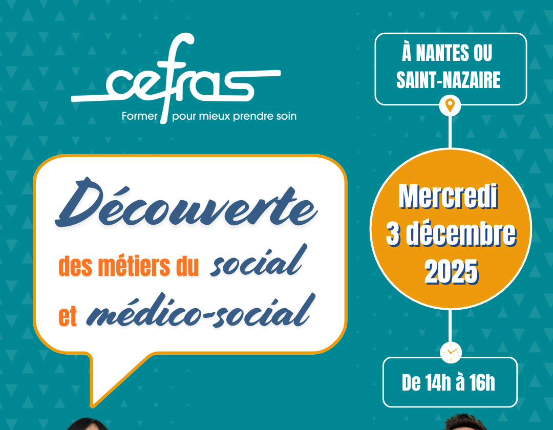 👉 Le Cefras t’invite à un temps de découverte le mercredi 3 décembre 2025, de 14h à 16h, dans ses locaux à Nantes ou dans ses locaux à Saint-Nazaire.