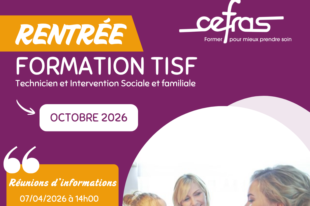 Le CEFRAS d’Angers propose la formation Technicien de l’Intervention Sociale et Familiale (TISF), avec une rentrée prévue en octobre 2026.
